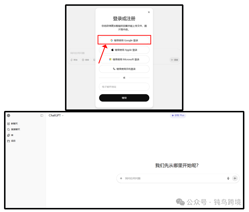 - 再次选择用Google登录,登录成功即可开始使用gpt-5
